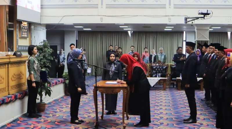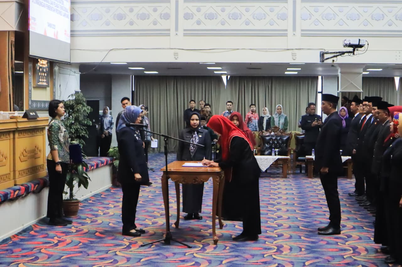 Bandar Lampung — Gubernur Lampung diwakili oleh Inspektur Provinsi Lampung, Bayana melantik dan mengambil sumpah/janji jabatan pejabat administrator, pejabat pengawas, dan pejabat fungsional di lingkungan pemerintah Provinsi Lampung bertempat di Balai Keratun Lt III, Komplek Kantor Gubernur, Bandar Lampung, Jumat (10/10/2025).