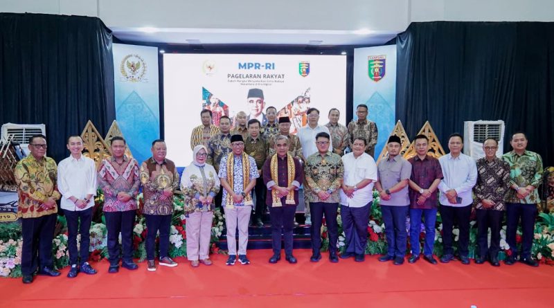BANDARLAMPUNG-Gubernur Lampung, Rahmat Mirzani Djausal menyampaikan apresiasi atas inisiatif MPR RI yang mengemas sosialisasi Empat Pilar MPR yakni : Pancasila, UUD 1945, NKRI, dan Bhinneka Tunggal Ika, melalui pendekatan seni dan budaya. Menurutnya, metode ini jauh lebih efektif untuk menjangkau masyarakat dari berbagai lapisan.