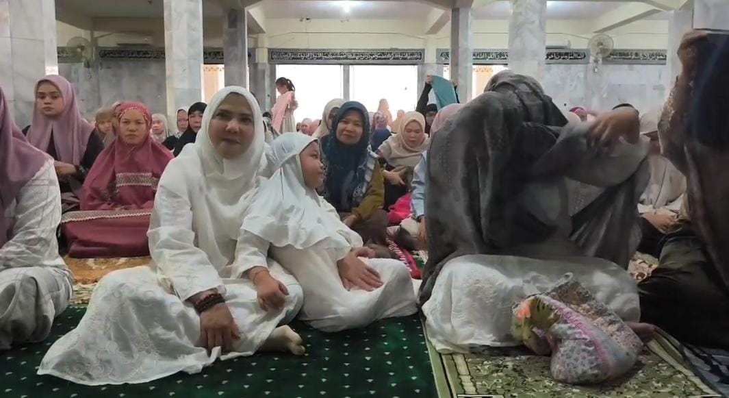 BANDAR LAMPUNG- Wali Kota Bandar Lampung, Eva Dwiana, bersama keluarga melaksanakan Salat Idulfitri di Masjid Agung Al-Furqon, Sabtu (21/3/2026).