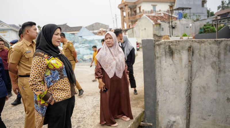 BANDAR LAMPUNG- Wali Kota Bandar Lampung, Hj. Eva Dwiana melakukan peninjauan aliran sungai dan gorong-gorong yang melintasi Perumahan Pujangga Alam, Labuhan Ratu, Kecamatan Kedaton, Kota Bandar Lampung, pada Selasa (31/3/2025).